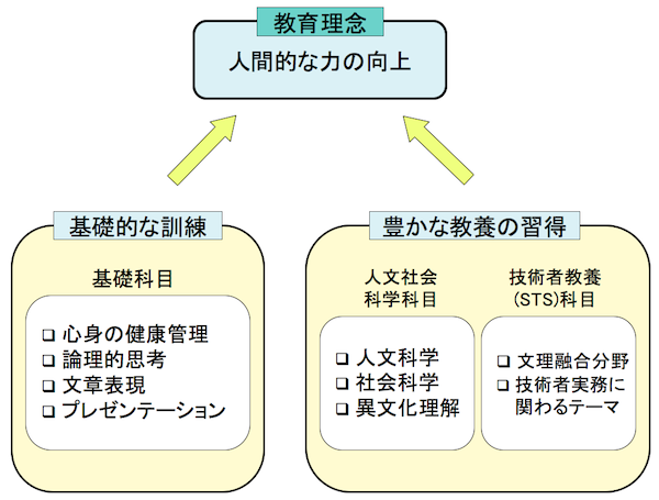 現在と未来の人々を幸せにする技術を実現するためには,技術者が単に技術的に優れているだけでは不十分であって,人間や環境に対する深い理解が必要です。また,現代のグローバル化した世界で,技術者として活躍するためにも,技術的な能力のみならず,人間的な能力が不可欠です。つまり,技術だけでは十分ではないのです。本学の丹羽保次郎初代学長は,本学のモットーとなった「技術は人なり」という言葉で,学生に技術以外の事柄も学び,自分を高めるように促しました。その考えを受け継ぎ,人間科学系列では,以下のような教育理念を掲げて教育を行っています。